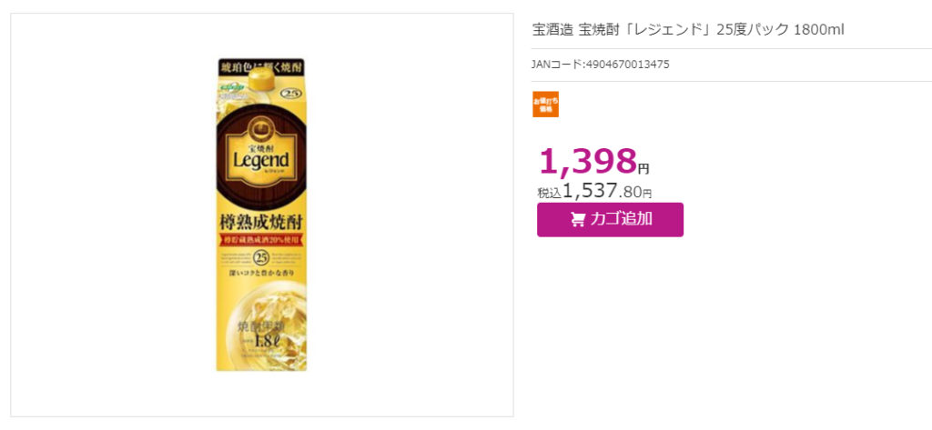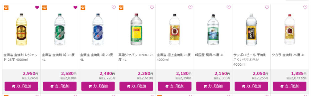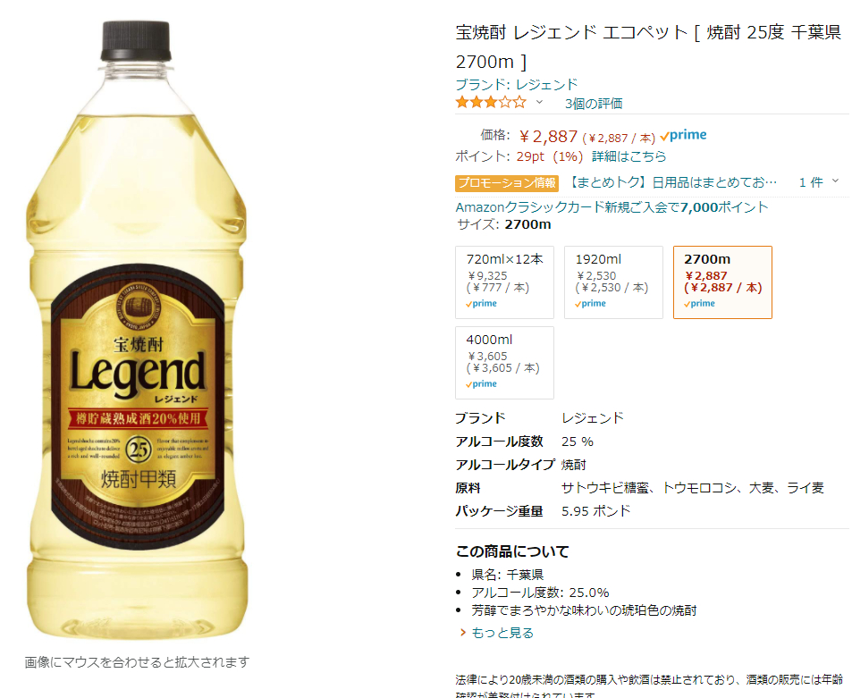 レジェンドは流石に甲類焼酎のロールス・ロイスだけあってぶっちぎってるんだが、4Lでの純との値段差と1.8Lでの純との値段差がなぜかこうなっているのだ。